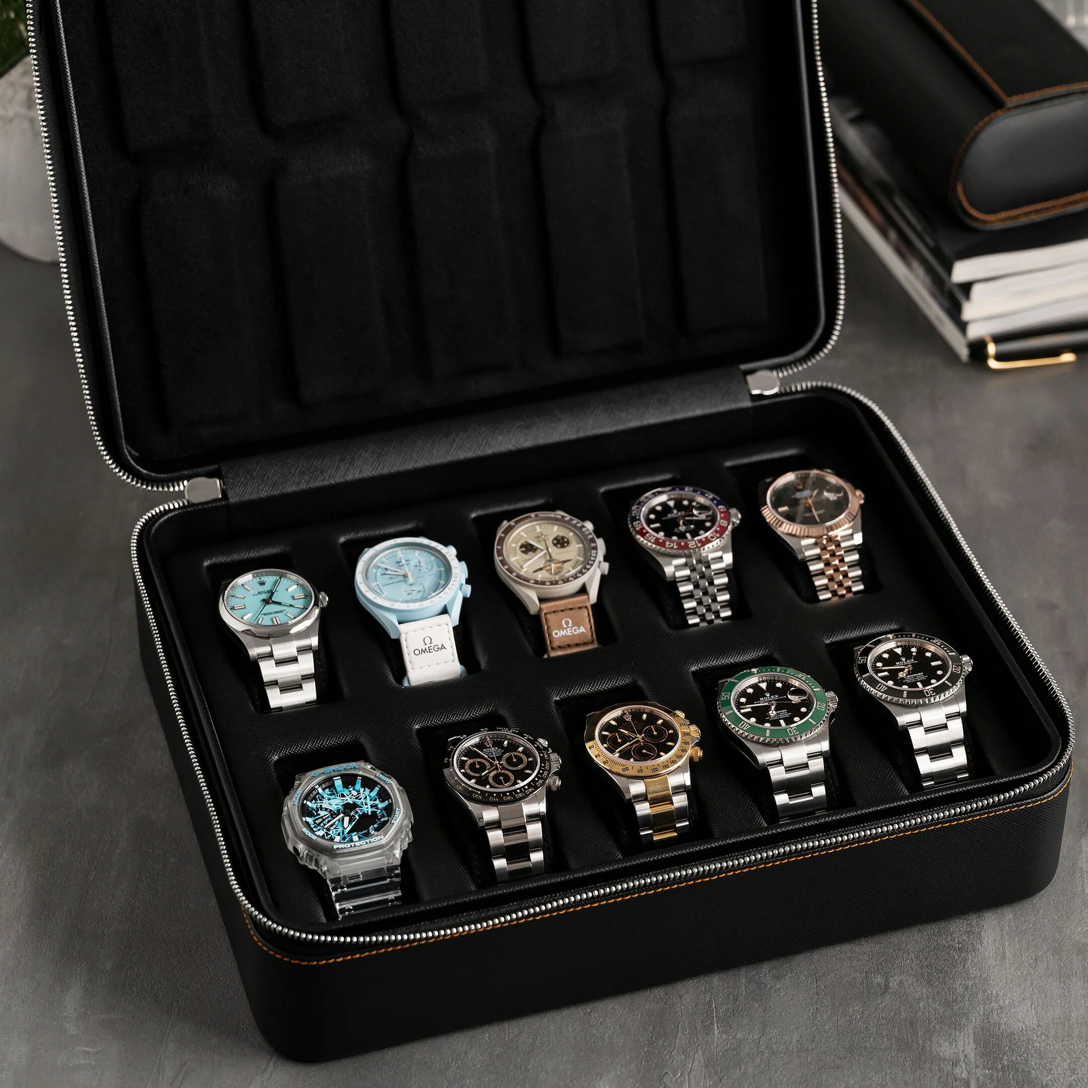 機能性と耐久性を兼ね備え、頑丈なケースは時計コレクションを運ぶ時や、日常の中で起こりうる衝撃からしっかりと保護してくれる強度があります。